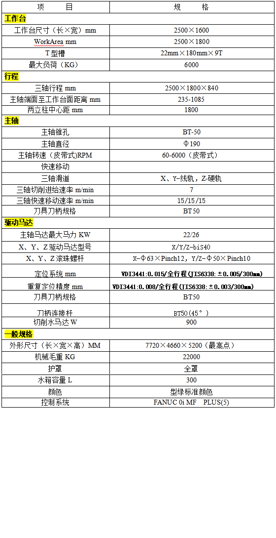 機(jī)械規(guī)格: